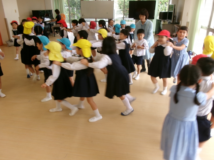 小学生のお兄さんお姉さんに小学校の中を案内していただき、探検を楽しんでいました。みんなでゲームをしたり、こまを一緒に作ったり、沢山優しくしてもらい「帰りたくな~い」「たのしかった!」という声が多数聞かれました。