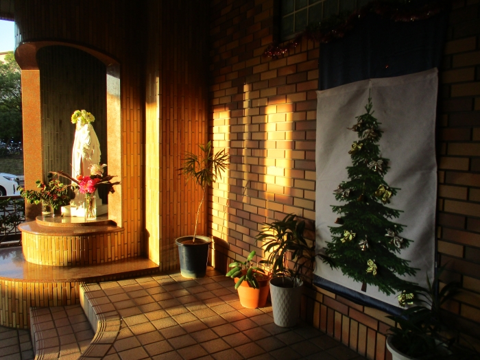 カトリック教会では30日から待降節(クリスマスの準備の期間)が始まります☆幼稚園でも早速イエスさまがお生まれになる馬小屋が登場しました。馬小屋の中はまだ動物たちしかいません。マリアさまとヨゼフさまはユダヤに向かって旅をしているところでしょうか・・・そんなことを考えながら、イエスさまのご誕生を心待ちにして準備をしました。これから少しずつ飾りも増え、クリスマスが近付いていることを感じてもらえたらいいなぁと思います!
