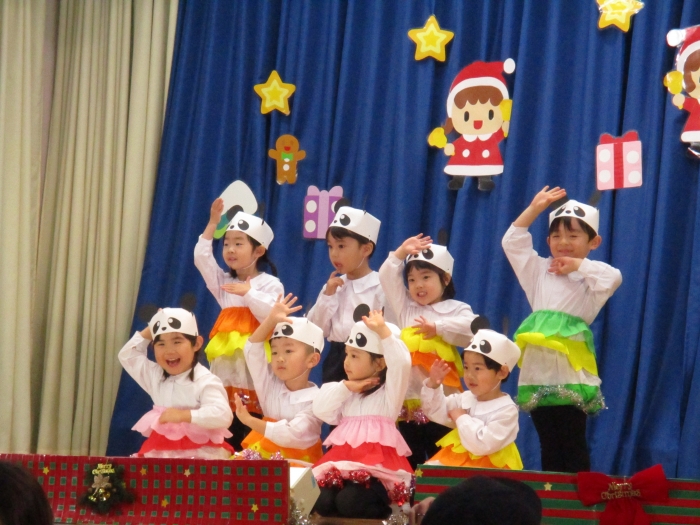 C組は、初めてのクリスマス会でドキドキしている子ども達でしたが、可愛らしいダンスを披露することが出来ました。