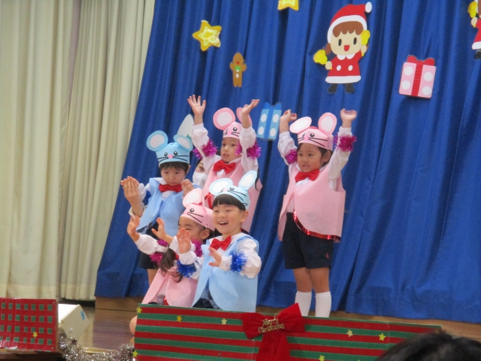 B組は、準備中は少し緊張した表情でしたが、始まりの音楽が流れだすと元気いっぱい歌い、最後まで楽しんで演じる姿がみられました。