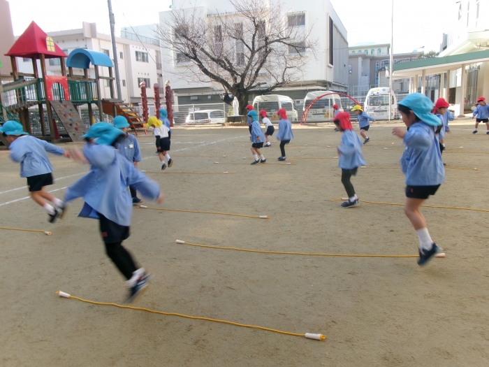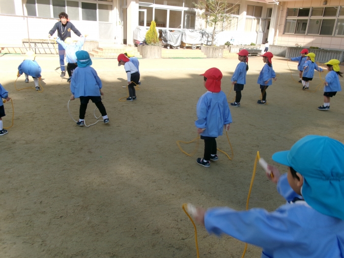全学年、縄を使って沢山からだを動かしました!縄跳びや片足立ちが上手な子が”チャンピオン”