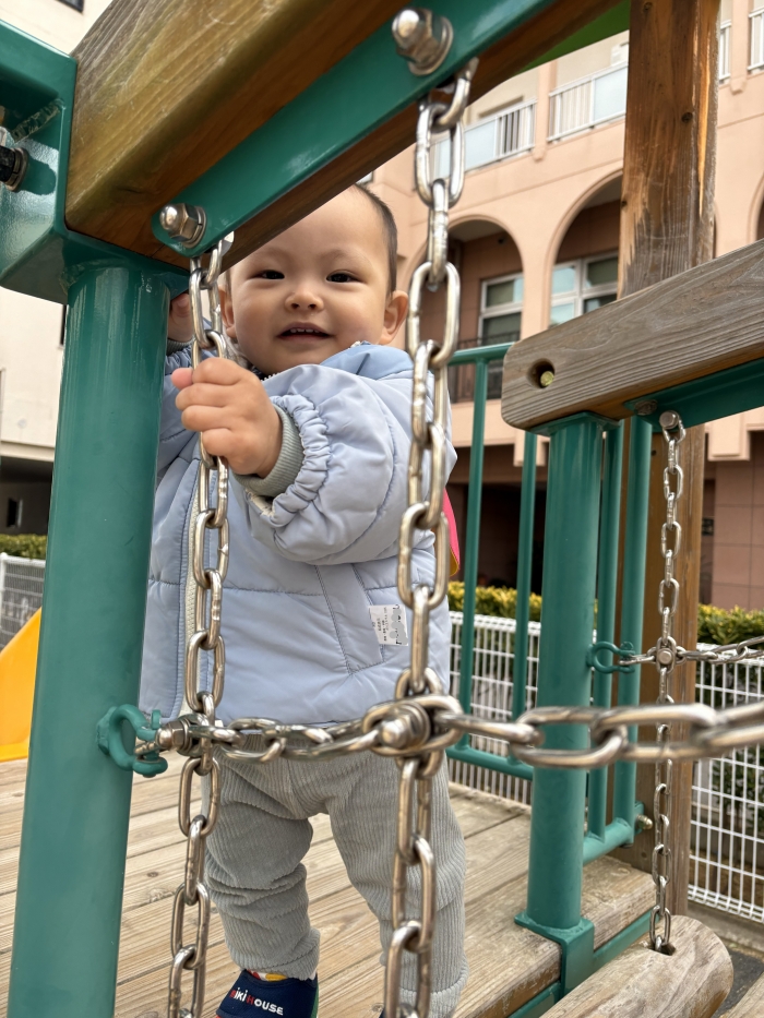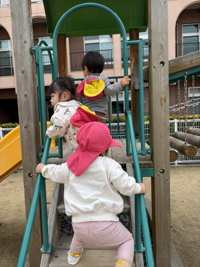 大型遊具の階段を自分で上手に登り、滑り台を何度も滑って楽しんでいました。