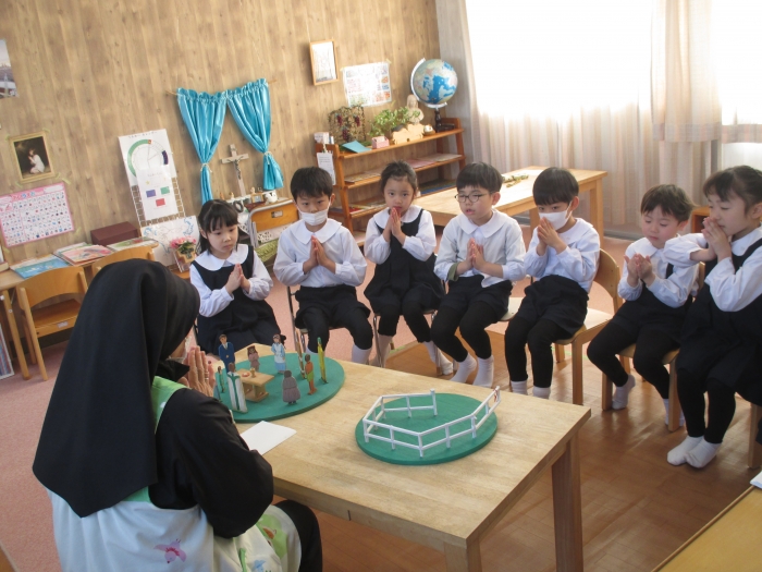 Cさん、Bさんとお話をきいてきた「良い羊飼い」がミサとどう繋がっていくのか、子ども達は感じてくれた様子でした。3月に行われる感謝ミサの中で、今までいただいたお恵みへの感謝とこれからの歩みの上に力がいただけるよう、共にお祈りしていただけると幸いです。