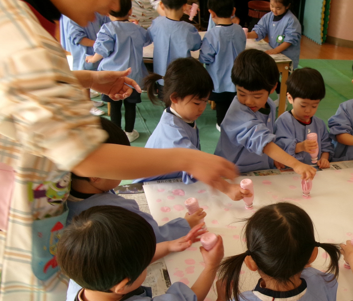 今日は、ひなまつり製作の最終日!今月D組さんは、ひな飾りを皆で作ってきました!最初は真っ白だった紙に、ドットマーカーを使ってピンク色のかわいい模様をつけました✿次に、折り紙を折ったり顔を描いておひなさまを作り、最後にひな壇に貼って完成!!わかば組とさくらんぼ組で2つのひな壇ができましたよ♪
