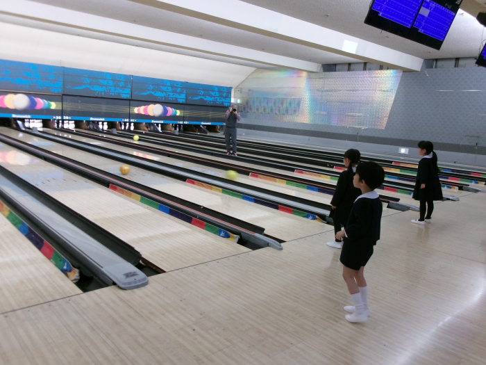 今日は、ラッキーボウルさんから招待をしていただき、A組さんがボウリングの体験をさせていただきました。ボウリングをはじめてする子どもも多く、始めはゆっくり投げていましたが、次第に投げるコツが分かり、ボールを速く投げて沢山のピンを倒すことができていました!