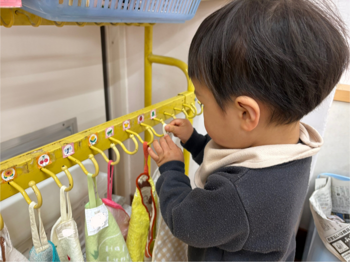 つぼみ組のお友だちは、次の1歳児クラスに向けていろいろなことに挑戦し、