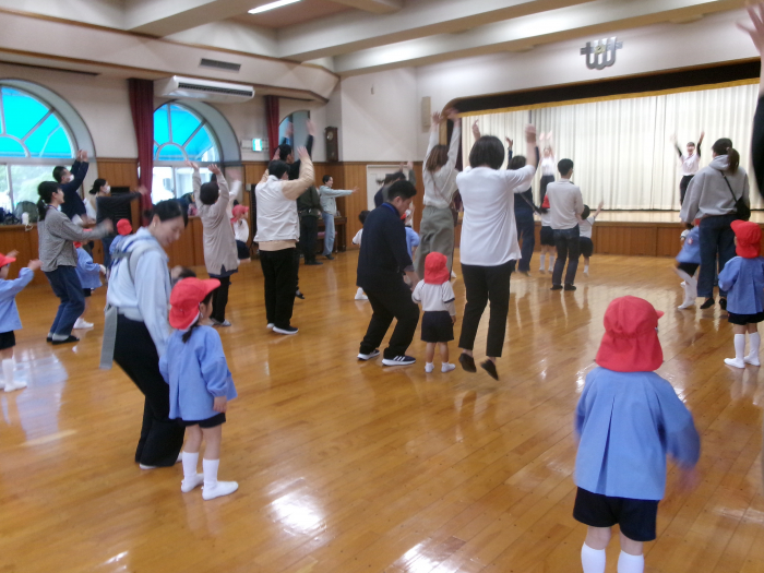 今日は、雨天の為幼稚園で親子レクリエーションが行われました。