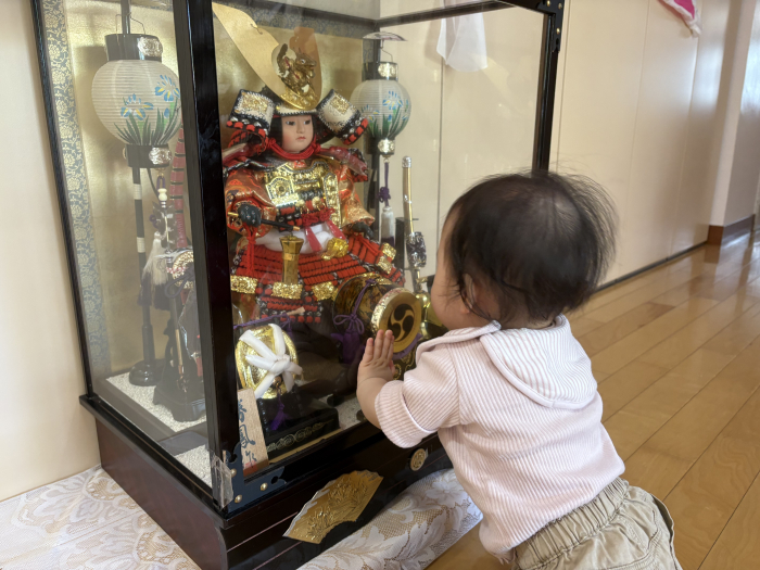 五月人形にも興味津々で、じーっと見つめてにらめっこしていましたよ!